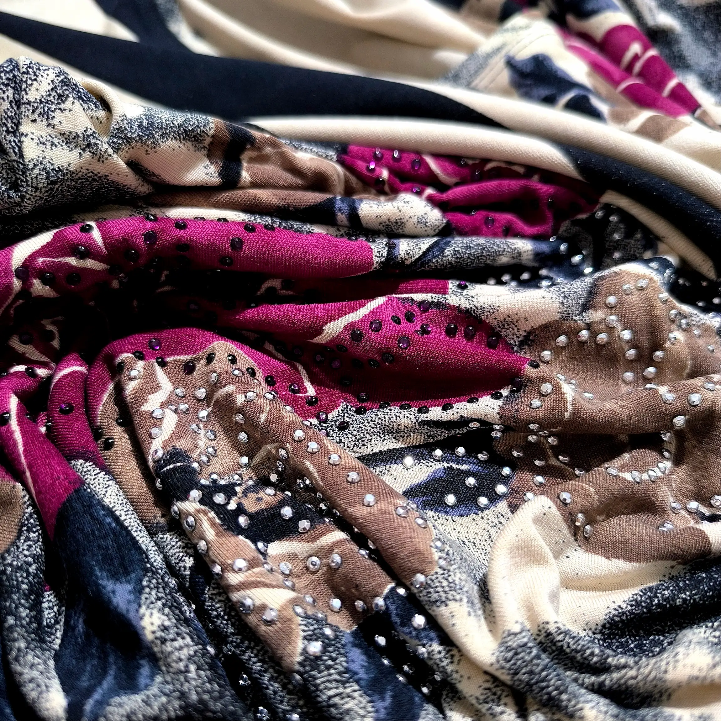 توضیحات محصول: جنس لباس نخی بوده و بر روی آن نگینکاریهای رنگی انجام شده است. یقه کار گرد و لباس دارای کشسانی متوسط میباشد.